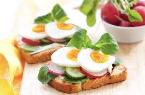 Premažite parče hleba maslinovim uljem ili puterom, istrljajte ga čenom belog luka, a zatim ga prepecite. Poređajte kuvana jaja preko, a prethodno ih isecite na četvrtine ili ih izrendajte. Ukoliko želite, dodajte sir i šunku, pa čak i neku salatu.